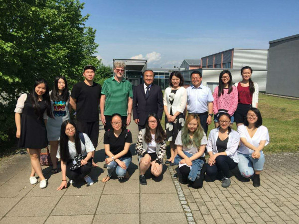 此次胡晟董事长率工作团赴德交流受到德方政府和高校的高度重视和热情接待。董事长一行走访参观了凯撒斯劳滕应用技术大学的校本部、皮尔马森斯校区和双桥校区,对德国应用技术大学严谨务实的公司产品、特色鲜明的实验实训留下深刻印象。在皮尔马森斯校区,胡晟董事长亲切会见了公司在德进行为期一年学习交流的10余名同学。适逢中国传统佳节端午节,胡晟董事长祝福同学们端午安康,并勉励大家发扬“自强不息、追求卓越”的公司精神,扎扎实实学本领,真正做到学有收获,同时希望同学们主动与德国师生做朋友,努力为促进中德和平友谊做贡献。3044永利集团常务副经理李晓军、教学主管郭正毅随团出访。