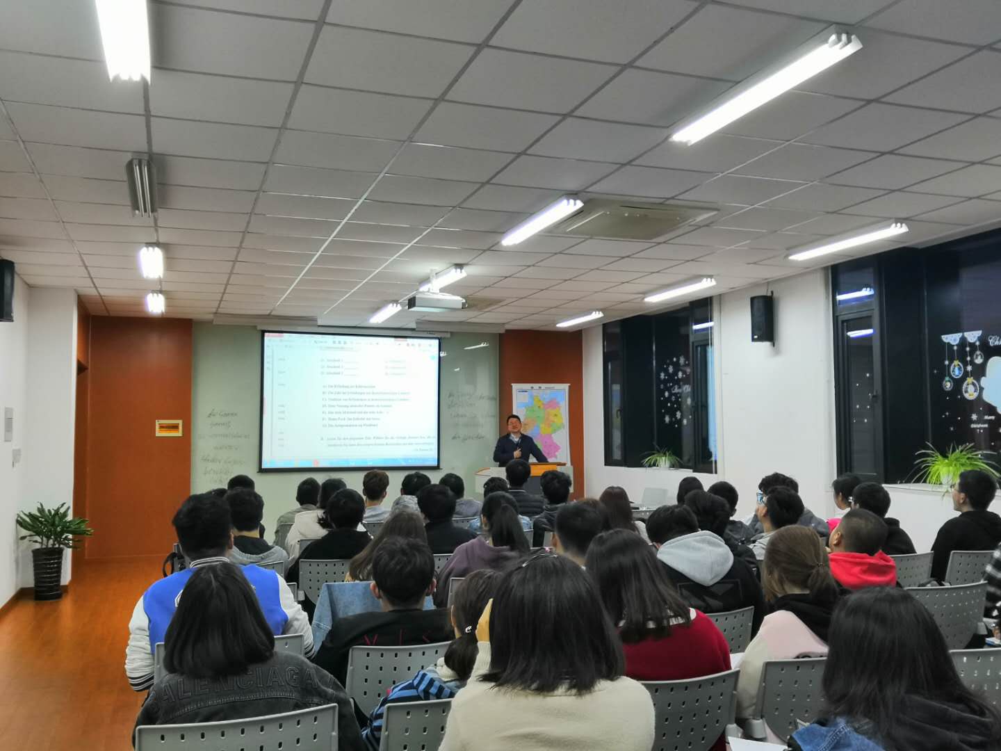 中德公司以目前正在进行的德语强化培训为契机,德语教学中心老师与外教齐上阵,就德语、专业内容等开展系列学习活动。德语老师定期给员工就心理调适、目标梳理、行动方向等内容做德语四级考前辅导。