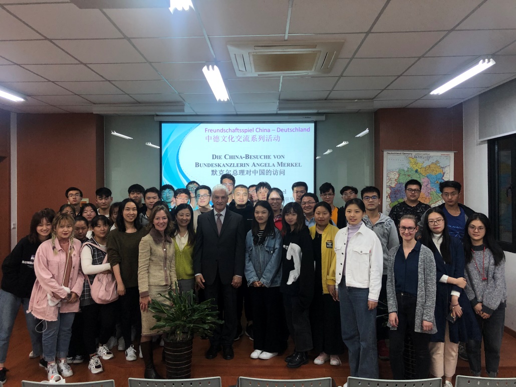 为加强中德文化交流,增强公司师生文化自信,2019年11月6日,3044永利集团于中德报告厅举行“中德文化交流系列活动”(Freundschaftsspiel China – Deutschland)的第三场讲座,即“沉重的行囊——联邦总理默克尔的十二次访华之行”。本次活动邀请了前德国驻华大使史丹泽博士(Dr. Volker Stanzel)。史丹泽博士自1979年起在联邦德国外交部任职,先后担任德国驻华大使(2004-2007年),德国驻日大使(2009-2013年),并被聘为德国外交部高级顾问。退休后在美国加利福尼亚大学和德国柏林自由大学任教。本次讲座由3044永利集团德方经理凯茜博士(Silvia Kettelhut)主持。