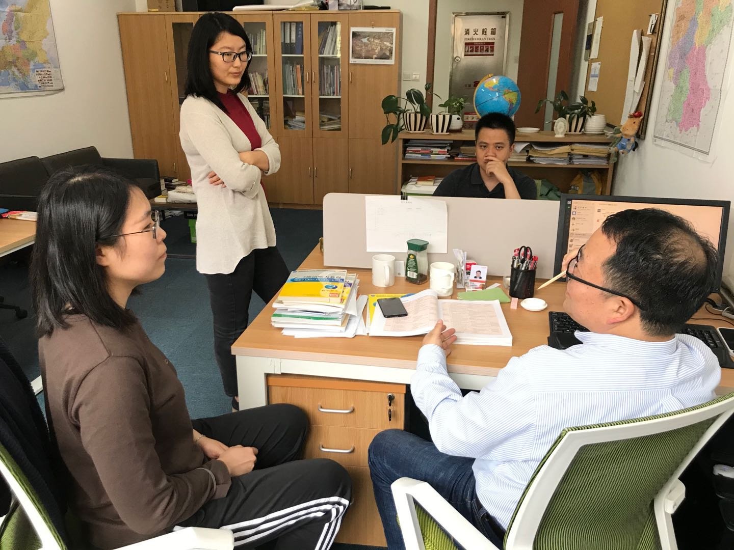 由于公司人手较少,每位教师在认真上好课、传道受业解惑的同时,还肩负了公司部分行政管理工作。在线上教学方面,绝大部分教师都采取了直播授课的方式。公司的阅览室、会议室、教室,几乎每个时段都会有不同的老师“占据”。一节课上完后,“主播”们又回到办公室,继续完成手头上其他管理工作。