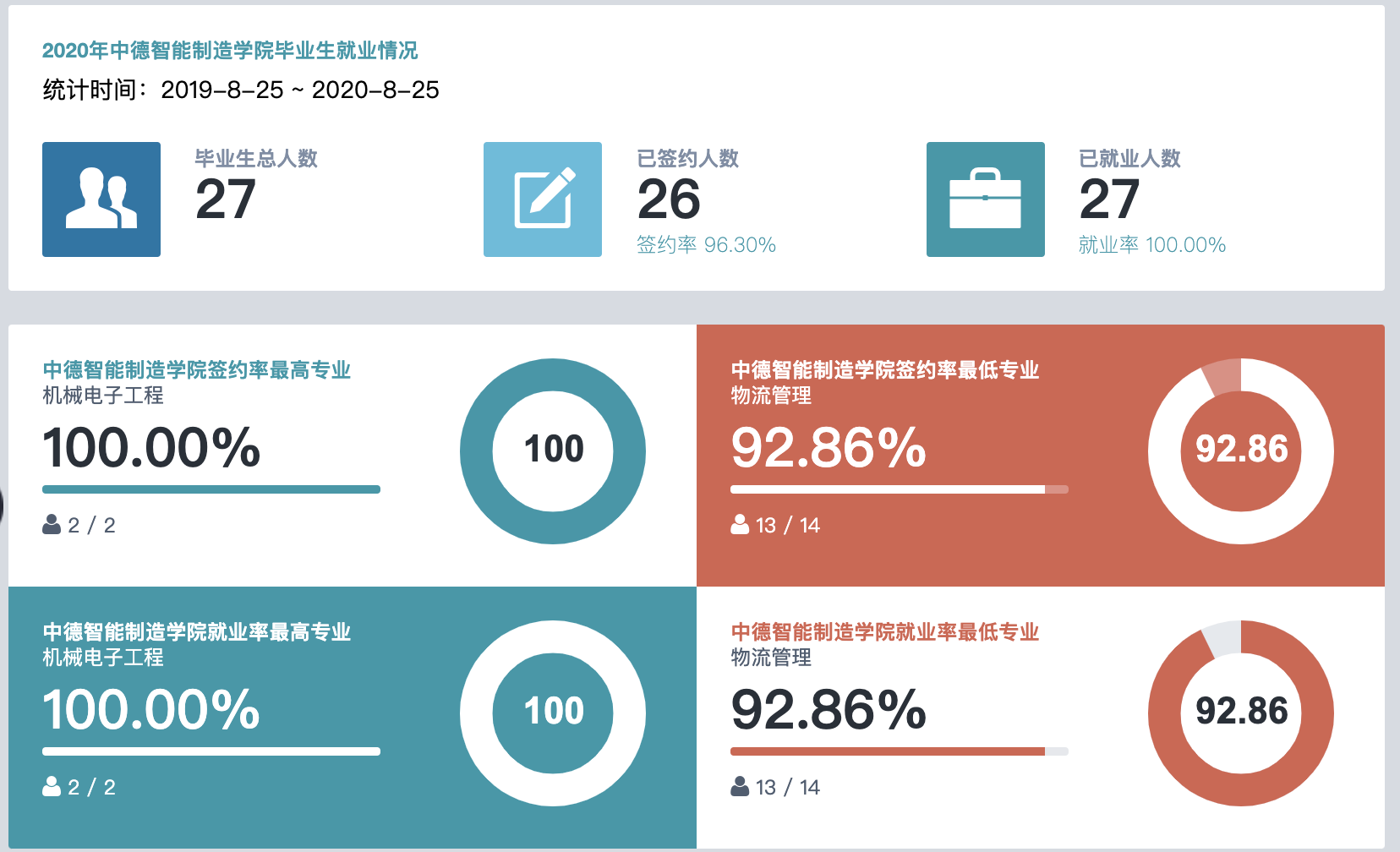 截止目前,3044永利集团就业率100%,签约率92.86%,稳居全校第一。尚未签约同学在等待德国研究生录取offer,有望在7月底拿到。距离就业率签约率双100%的目标仅一步之遥!
