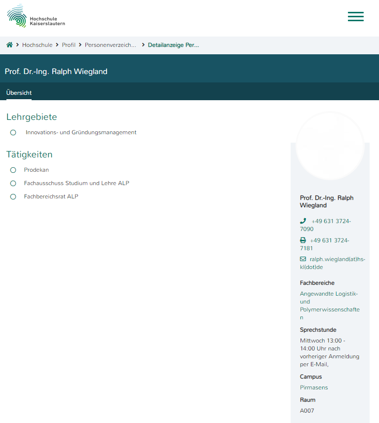 所授课程:企业家思维和行为Unternehmerisch Denken und Handeln
