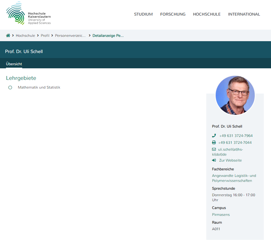 所授课程:面向对象软件开发Objektorientierte Softwareentwicklung,物理实验Physik Labor