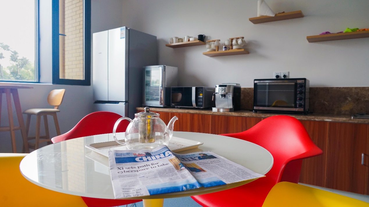 提到休闲,就不得不说中德“茶水吧”了。假如你是个吃货,你一定会爱上这里!“茶水吧”配备了咖啡机、烤箱、冰箱,在这儿,你可以喝到现磨咖啡、学习烤面包,满足你的味蕾!