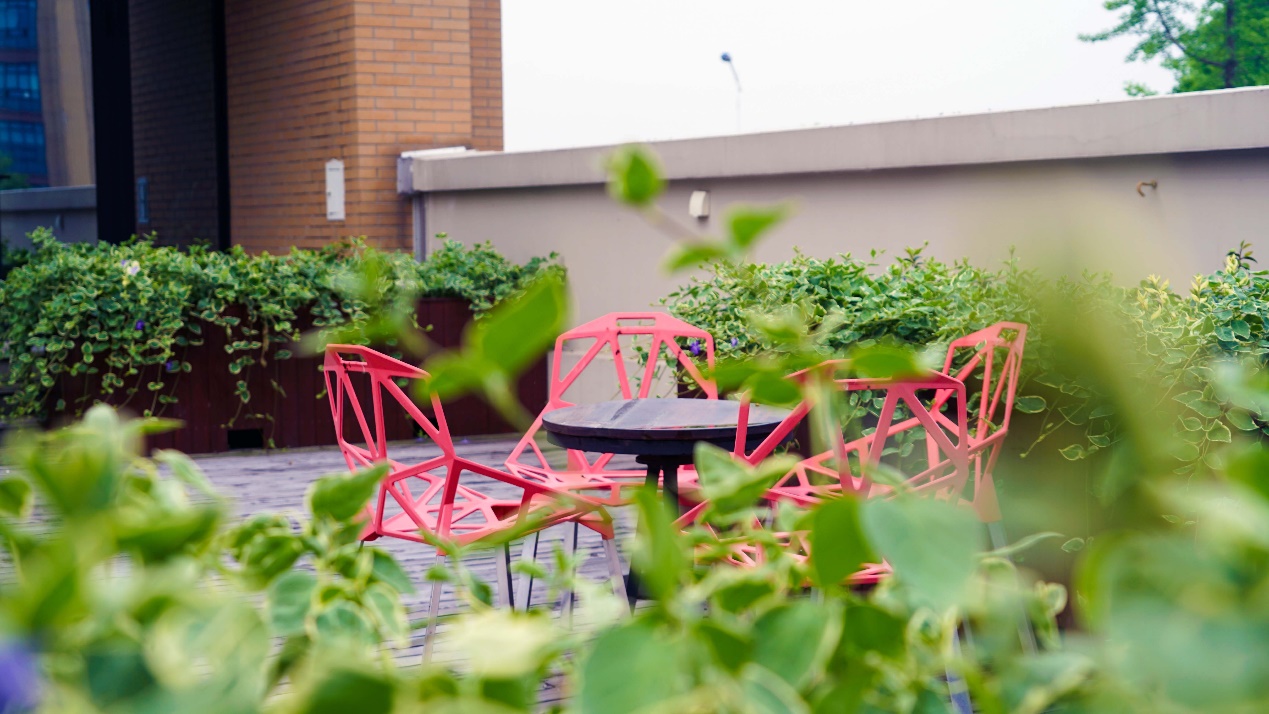 在二楼,有一个中德楼与智能制造楼相连接的地方,叫做“空中走廊”。学习累了的时候,你可以坐在空中走廊上,吹着微风,与朋友聊聊天,畅谈诗与远方……