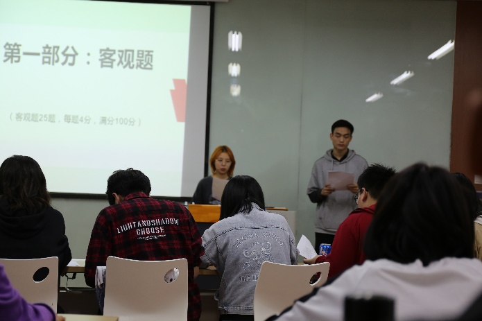 此次竞赛活动分为客观题、必答题、抢答题、论述题、观众互动抢答和最后分数评定六个环节,并且还准备了精美的小礼品来给答对题目的亲友团奖励。在第一、二环节客观、必答题中,每组其中一位成员被抽中答题后,小组的成员小声讨论,以此来帮助各自的答题成员回答问题。最精彩的莫过于第二环节,各支队伍积极进行抢答,场面十分激烈,现场热烈的气氛一度达到顶峰,主持人不得不多次重新开始报秒,各个小组都使出浑身解数,尽自己最大的努力。到了最终决赛环节,各位参赛队员竭尽自己所能,都希望在决赛环节中得到较好的名次。