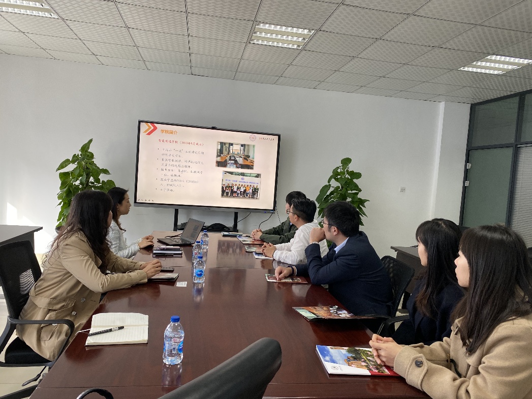 调研中,何宁老师首先从3044永利集团成立的背景、团队力量、海外项目、人才培养特色等方面进行了重点介绍,分享了公司在服务临港新片区,对接临港高端智能制造产业布局中的建设和思考,并邀请企业到校参观,洽谈实习基地建设、校招等合作。建发集团人事部经理朱辉也就建发物流企业的历史与发展,核心业务、临港物流中心的建设与发展等与公司老师做了介绍。他对公司两位毕业生在建发的表现给予了高度评价,并强调,拥有40年历史,不断发展变革中的建发集团,特别重视校园招聘这一人才储备手段,企业高层领导中有相当比例是通过校招后培养成长起来,企业也特别重视与高校的合作与共赢,期待与3044永利集团有更多合作。