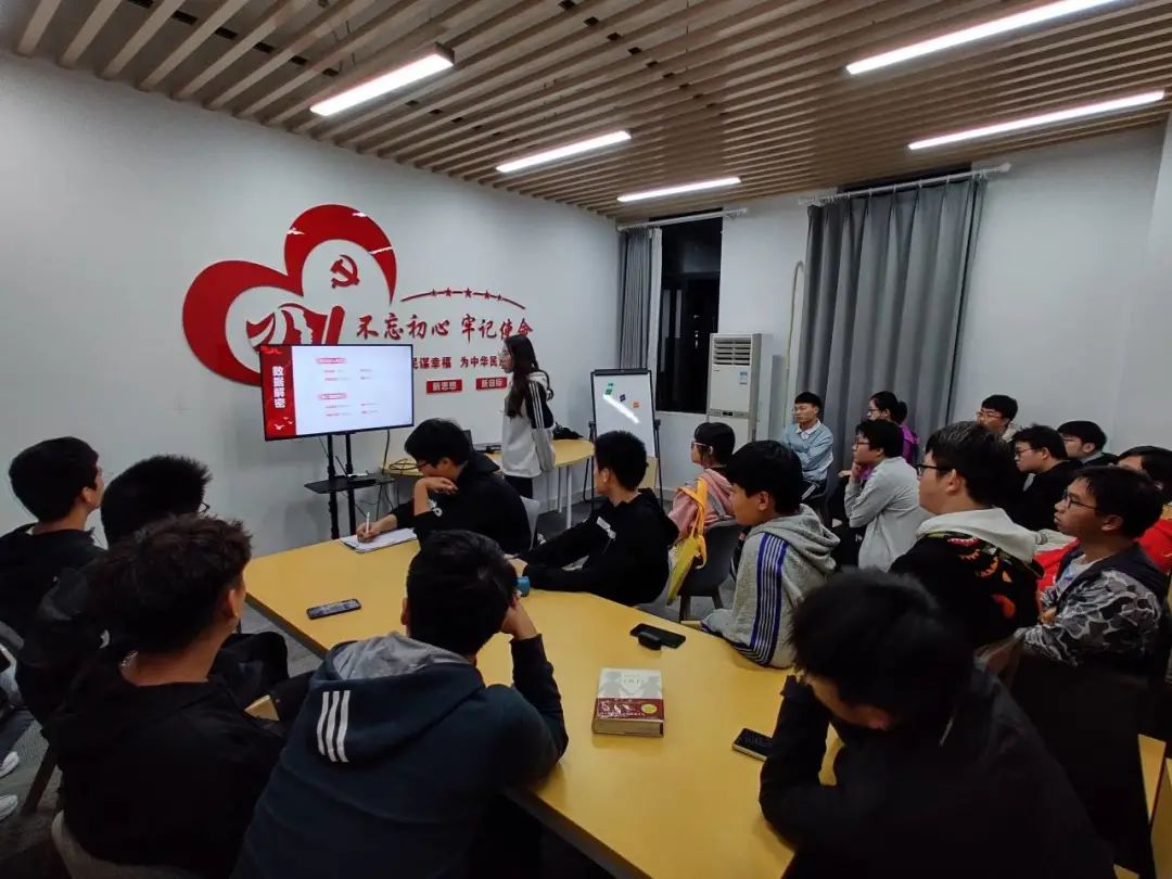 大屏幕首先呈现的就是《中国人民志愿军战歌》里最令人熟悉的歌词:“雄赳赳,气昂昂,跨过鸭绿江”。接下来,朱欣怡学姐向同学们讲述了抗美援朝的种种事迹,带领他们走进了历史,深入认识了那些可爱的人,主要有杨宝山、黄继光、杨根思。活动中途,李玲老师的到来使得此次活动更具意义。在小讨论中,同学们交流了他们了解到的关于抗美援朝的人或事。每位同学和老师都受益匪浅。最后,老师和同学们以“致敬人民英雄,牢记初心使命”的精神理念为该活动画上完美的句号。