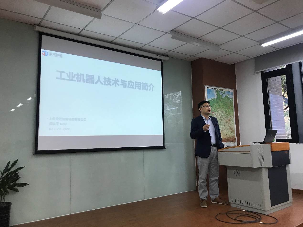 临港新片区投资促进服务中心主任、“老顾说临港”融媒体“带城主播”顾长石为同学们介绍了临港的过去、现在和未来,通过聆听讲座,同学们加深了对临港的了解,也对自身未来发展有了进一步的规划。上海贽匠智能科技有限公司副总经理龚轶平为同学们介绍了工业机器人技术与应用,同时也分享了自己在工作及成长过程中的感悟。上海智能制造系统创新中心有限公司总经理陈廷炯从四个维度向同学们深入解读了智能制造的内涵,也给同学们大学阶段学习给出了建议。同学们在聆听专业导读以及与专家交流互动中,丰富了知识,开阔了视野,也加深了对专业的认识,明晰了对未来发展的规划。