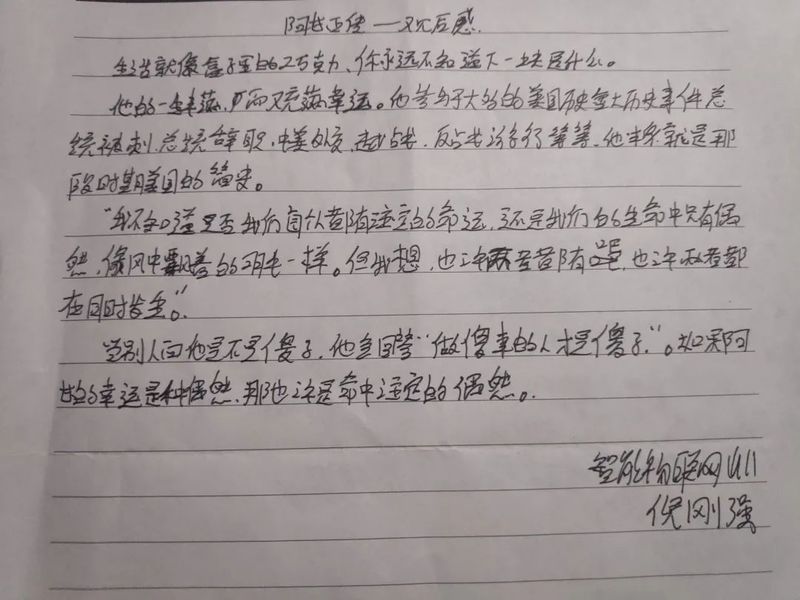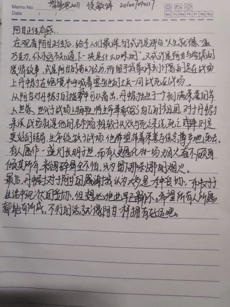 在影片结束后,同学们都非常有感触,写下了自己看完电影后的收获。