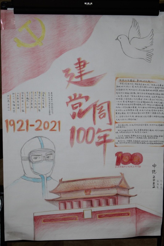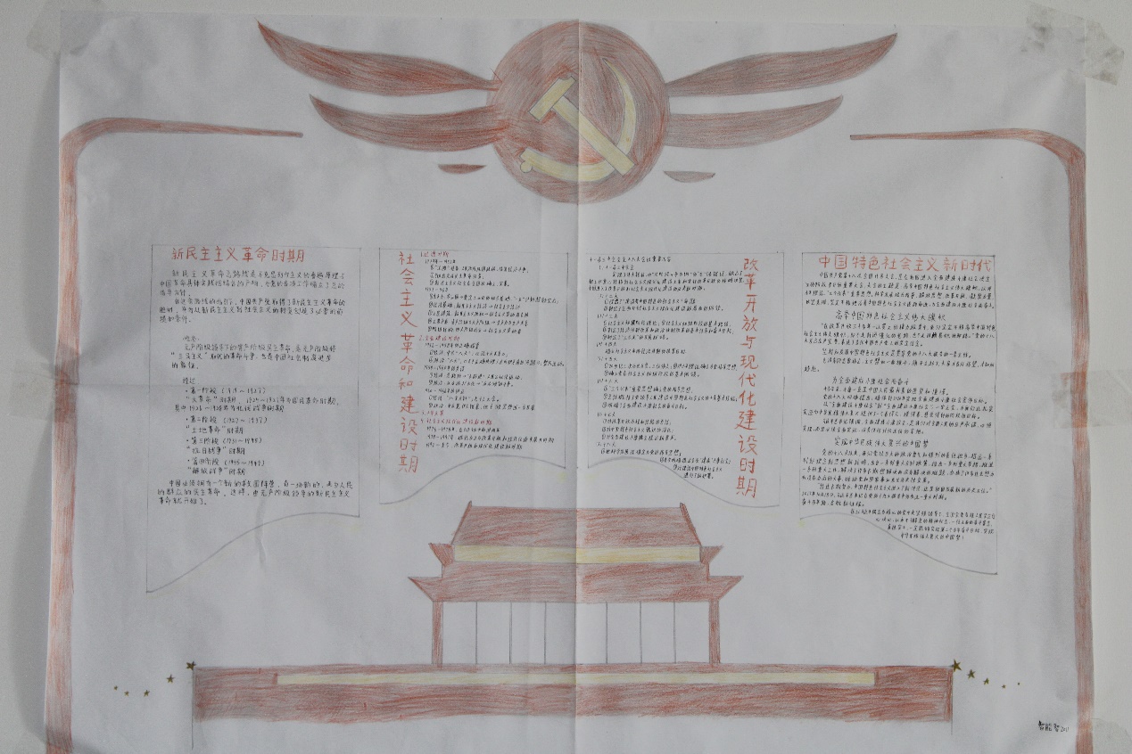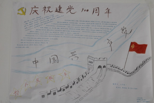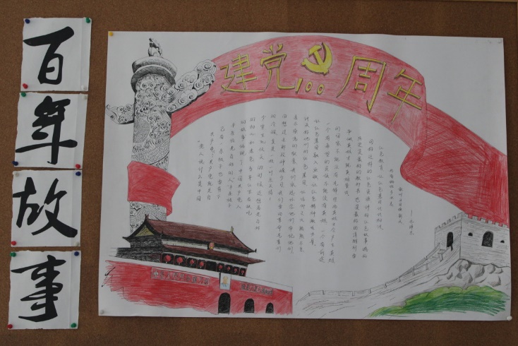 在公司党总支员工会的鼓励之下,各班的同学积极响应,设计了手抄报版式。他们选择了不同的方式来展示百年以来他们认为重要的历史故事。在入选的六份手抄报之中,党的一大、南昌起义、长征、抗日战争等重大历史事件都有精彩的展现。手抄报辅以各式各样的色彩装饰,在展出之后获得了同学们的一致好评,课间时常可见来往的同学驻足欣赏。