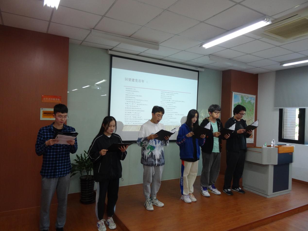 第六组,梦回1921队带来的打卡成果展示及朗诵《百年沧桑,百年辉煌》。