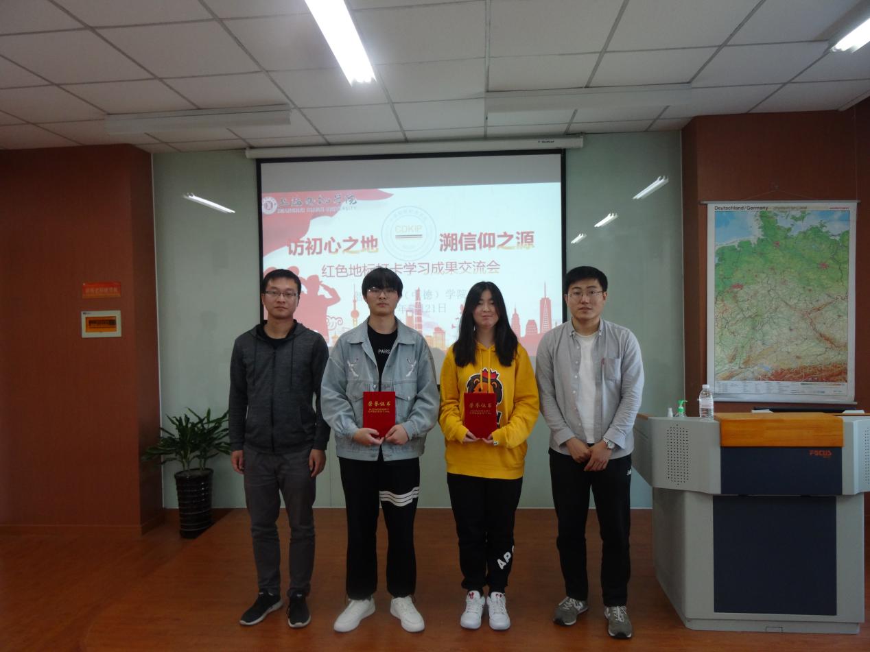苏庆刚老师则表示感谢同学们对此次活动的精心付出,从成果展示中也看出同学们这次活动的认真踏实,也希望同学们通过本次活动多走走看看多了解党和国家,感受先烈们的付出,思当今生活来之不易,了解中国共产党。真正做到心中有信仰,有标杆!最后希望同学们在今后的生活中坚定信念坚定党!