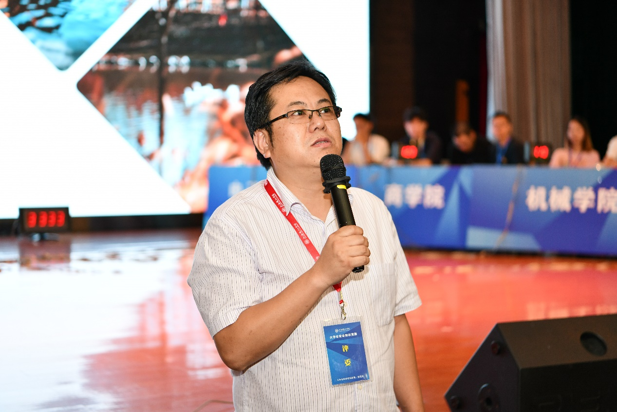随后,姚伟春老师对本次比赛进行点评。他指出:本次比赛的宗旨在于加深同学们对安全知识的重视和理解,并减少安全事件发生的概率,知道通过哪些途径维护自身权益。校园安全与每位同学息息相关,希望各公司代表队在竞赛结束后带动身边同学了解安全知识,共同维护校园安全。