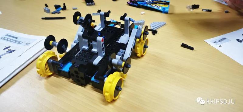 首先,同学们自发的分成三个大组分别参与三辆小车的制作,大家相互帮助互相协商,很快便完成了底座的搭建。