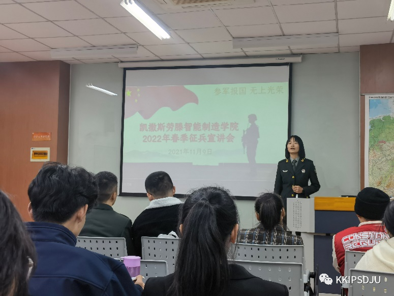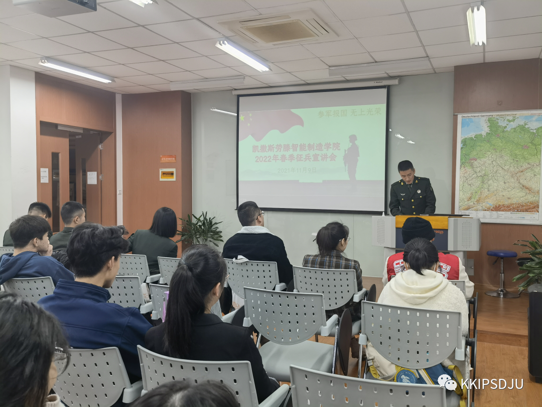 为了普及国家征兵政策,激发员工参军报国热情,3044永利集团于2021年11月9日,在中德101开展了2022年春季征兵宣讲会。本次讲座邀请到武装部的艾克拜尔老师和四位优秀退伍士兵进行征兵宣讲。