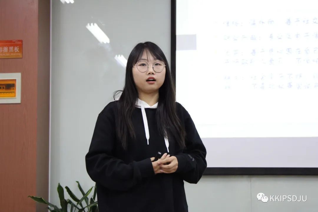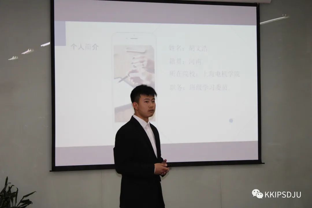 第二位演讲者沈龙涛同学进行完简单的自我认知介绍后,展示了自己兴趣测评的结果,分析了自己的优缺点,他认为自己要加强注重全局,以更开阔的视野来看待事物的可能性。他分析自己更注重与人之间的关系和自我价值的实现,因此更期待拥有人际关系和谐的工作环境和具有团队合作的工作。接着他浅谈了自己对电气有关职业的认识,他认为电气工程在各行各业都有涉及,职业前景开阔。最后介绍了自己现阶段的目标。