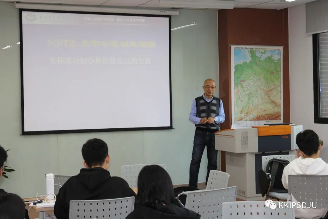 下午是殷老师市场营销和商业模式的课程,他从一个问题入手,通过对回答同学进行奖励以此让同学们明白要善于抓住机会,勇于尝试。他讲解到,对于市场营销,就是要抓住时机。接着,他通过生动有趣的话语向同学们讲解怎样成功创办和经营自己的生意,让同学们了解到一家公司通过何种方式运行下去并获得利润。在课程的最后,大家积极地向老师提出自己的疑问,请教现在想要开一家小商铺该如何去做、怎么经营等等。殷老师一一为同学们详细解答,大家受益匪浅。