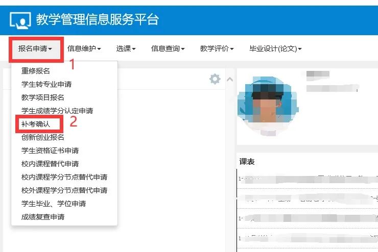 需参加2021-2022学年第一学期期末考试补考的同学,请在规定时间内登陆教学管理信息服务平台进行补考确认报名,期末考试申请缓考的同学也需在同一时段进行确认,未通过进行报名确认的同学视作放弃补(缓)考资格。