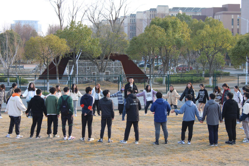 下午四点,在滕宇老师的带领下,同学们来到操场,摩拳擦掌、跃跃欲试,期待活动的开始。首先是热身环节,“正话正说”和“正话反说”让同学们很快进入状态。
