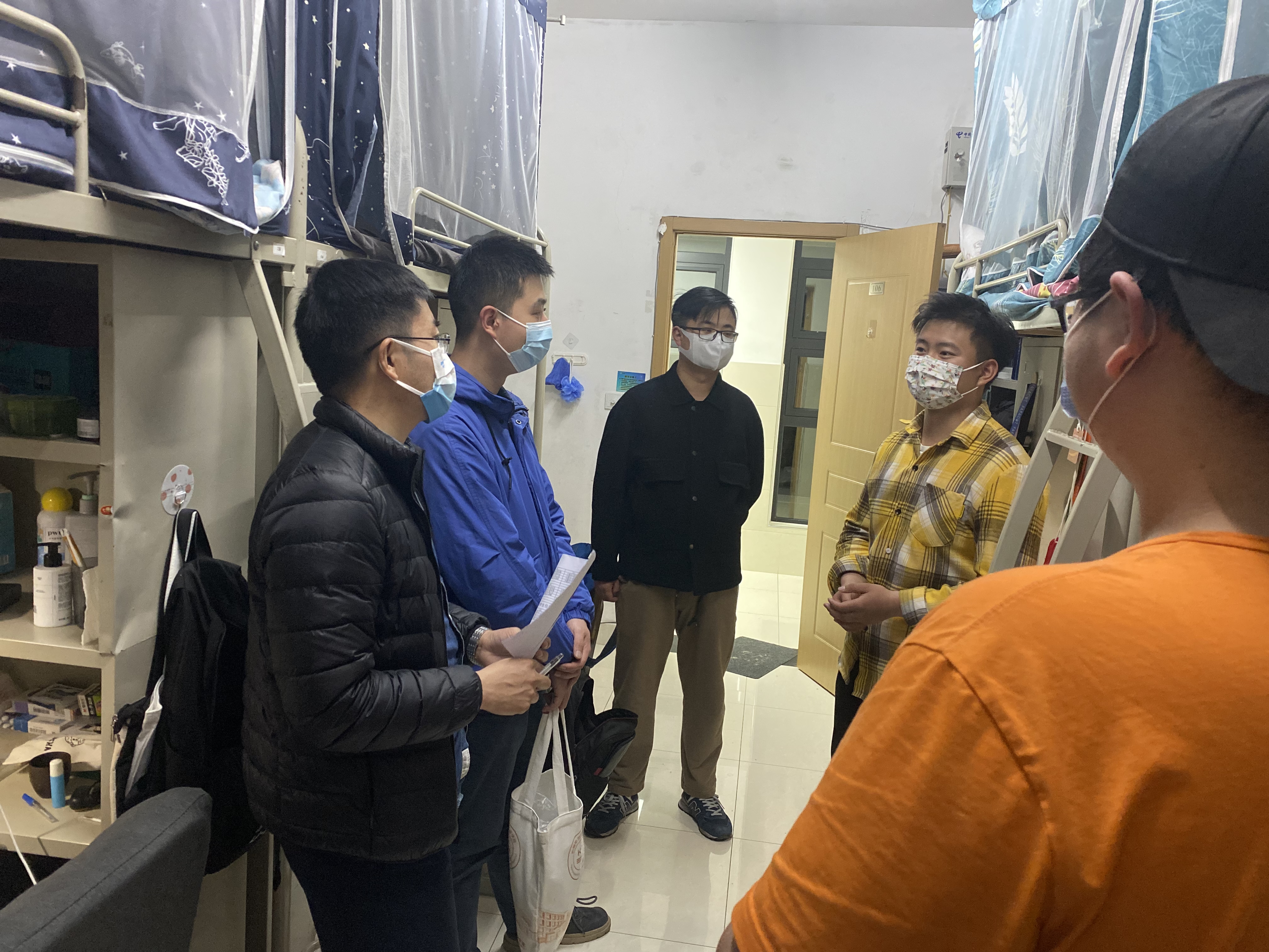 (青年教师、班主任走进员工宿舍,了解员工线上学习情况和思想状况)