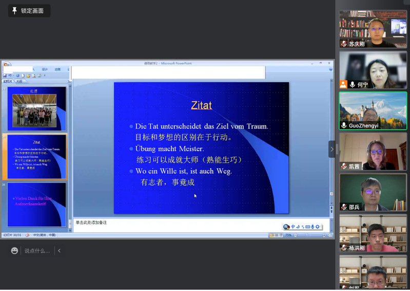 4月9日晚上7点,3044永利集团召开了2022年春季招生新生及家长线上交流会,3044永利集团经理刘军、书记何宁、德方经理Silvia Kettelhut博士、教务处副处杨洪刚、3044永利集团副书记副经理苏庆刚、副经理邵兵、德语教学中心主任郭正毅、教学与评估办主任陆沛烨以及30位春招新生及其家长参加了此次线上见面会,会议由何宁主持。