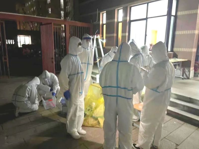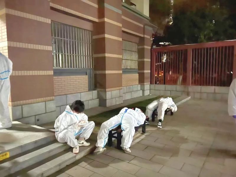 每天的20%抽检,以楼为单位,他们不辞辛苦地搬离、转移地点,为了能给每一位同学做好核酸。