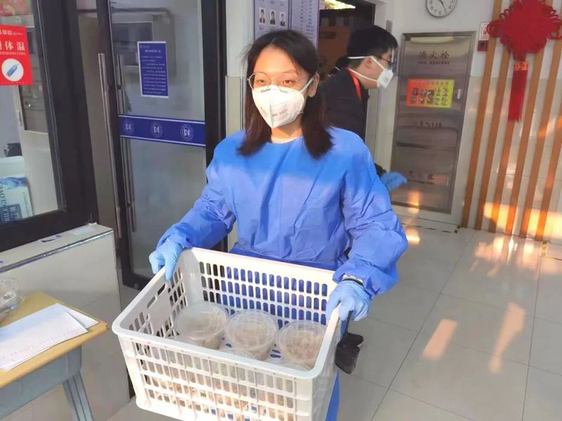 严峻的疫情形势下,即使需要早起为同学们分发抗原试剂,驻楼辅导员和楼层志愿者们都在所不辞。