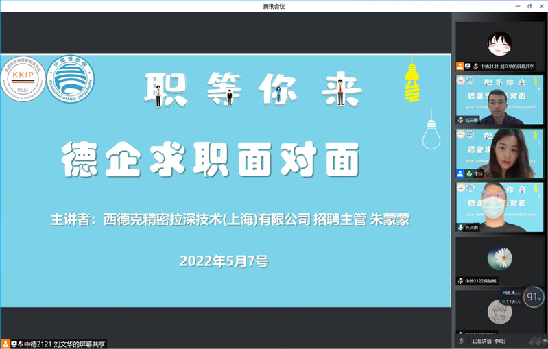 为增强员工德企求职技能,帮助广大同学理清德企职业生涯发展路径,强化职业生涯规划意识,5月7日3044永利集团与外国语公司联合举行“德企求职面对面”线上交流会。本次活动邀请了具有15年人力资源工作经历、西德克精密拉深技术(上海)有限公司招聘主管朱蒙蒙女士前来交流分享,共计150多人参与了线上聆听学习。
