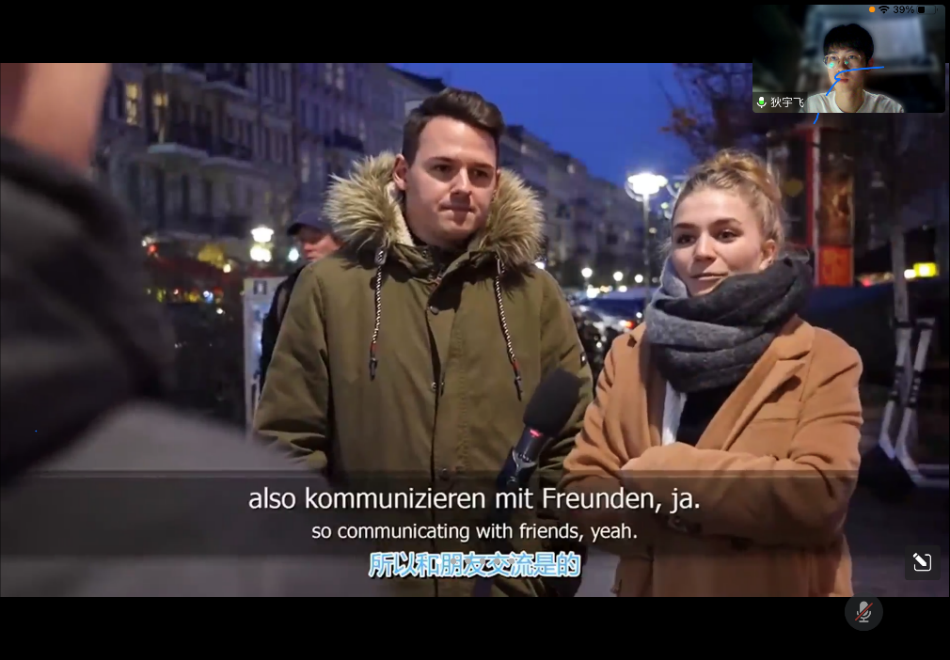 与此同时,狄宇飞同学还为大家播放了“德国人的心理健康”一短片,该短片通过街头采访的方式,向各位展示了德国人如何维护自己的心理健康。