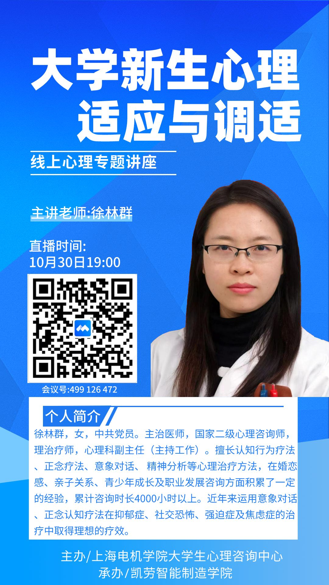 本次讲座由3044永利集团老员工心理咨询中心主办,3044永利集团承办。讲座邀请到南汇精神卫生中心的徐林群医生,为同学们答疑解惑。