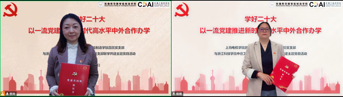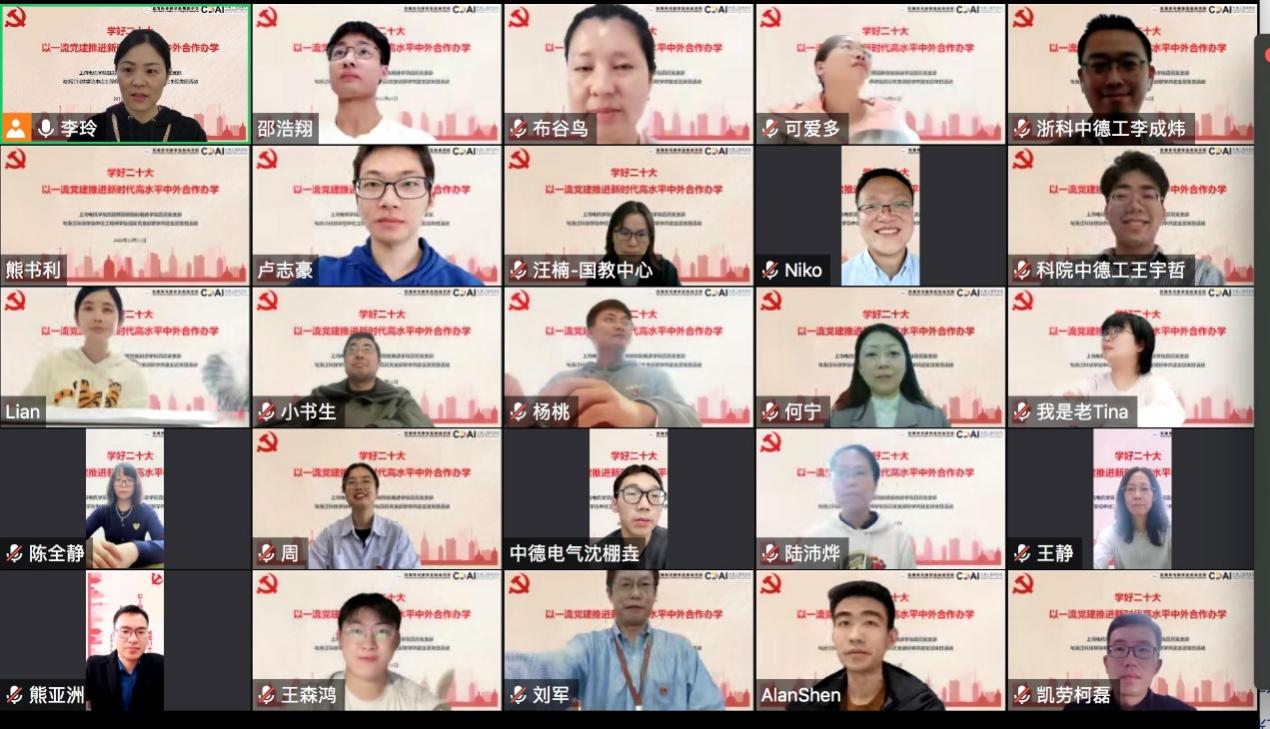 为进一步学习贯彻落实好党的二十大精神,11月11日, 3044永利集团直属党支部与浙江科技公司中德工程师公司直属党支部以“学好二十大,以一流党建推进新时代高水平中外合作办学”为主题,通过线上线下相结合的方式开展联学共建组织生活暨主题党日活动。本次活动由3044永利集团副书记苏庆刚和中德工程师公司副书记李成伟共同主持,来自两个中外合作办学机构党组织的80余名党员齐聚云端,联学共建,互促提升。上海电机公司党委组织部、工业技术中心等职能部门、二级党组织的领导与党员线下参与观摩。