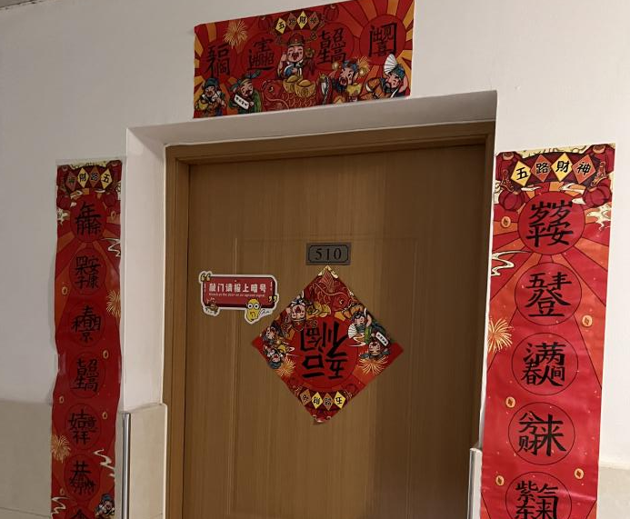 在对宿舍的装饰方面,同学们也是做足了准备,不仅在门上贴上了专属门牌及标语,给书柜也贴上了可爱有趣的图案,让本身简单朴素的房间焕然一新,变得温馨舒适起来。