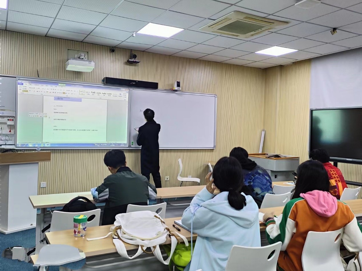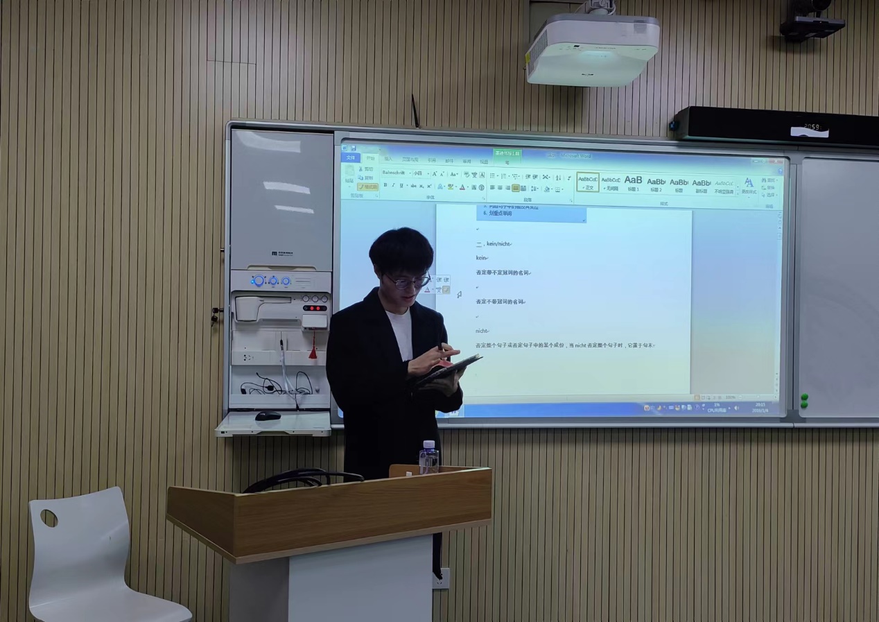 小讲师先为大家简单介绍了德语语法中的补足语和说明语,并通过几句典型的例句详细为大家讲解了在德语句子中补足语和说明语的用法。小讲师一边讲解,一边反复询问同学们有没有问题,同学们也都积极提出自己的疑惑,与小讲师互动。