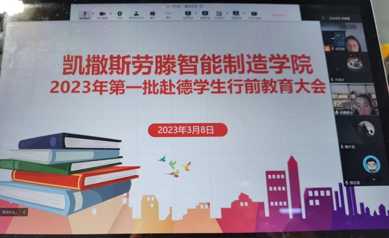 此前,公司在线上腾讯会议举行了2023年第一批赴德员工行前教育大会。国交处彭睿睿、乔燕华老师,3044永利集团苏庆刚、邵兵、郭正毅老师及公司第一批赴德的17位同学参加。几位老师分别从留学常见的出入境问题、安全问题、学业问题、员工宿舍问题、日常生活等方面,给即将赴德的学子提供了最实用的行前建议,帮助即将启程的学子们更好地融入职工活。