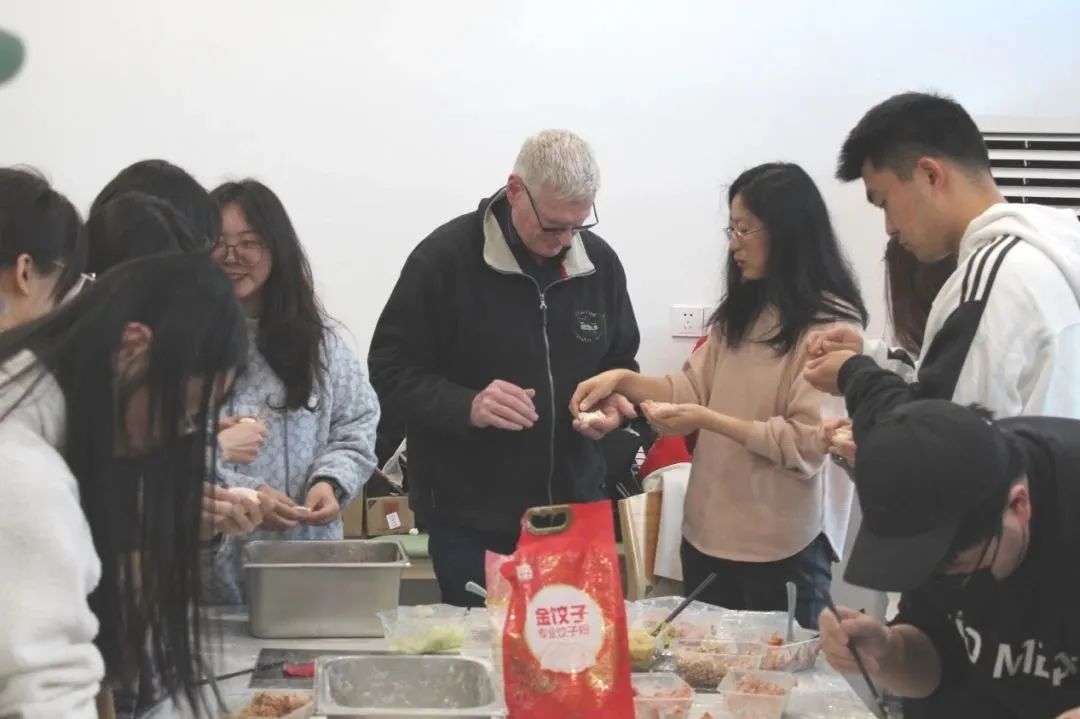 “巧手捏出玲珑褶,皮薄馅大锅不沾。” 在包饺子的过程中,外教老师也跃跃欲试,经过了同学们的热心帮助,顺利学会了这项技能,包出了玲珑可爱的水饺。