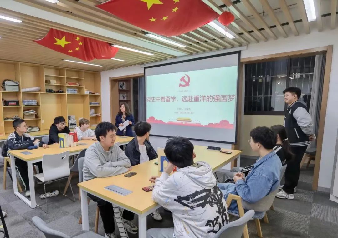 穿越百年,如今,重走新时代的赶考路上,我们站在这片土地“再出发”,继续探寻我们的留学梦与强国梦。4月11日晚上,公司各班级党章学习小组代表相聚德泰书院,与20级中德2023班班长,支部重点发展对象胡文浩一起学习“党史中看留学,留学中强中国”主题。