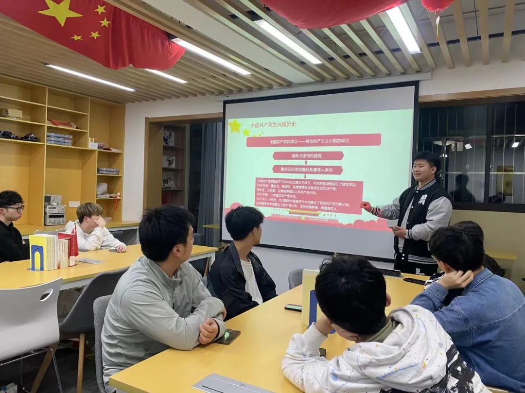 因何留学?如何留学?留学为何?作为校级党史宣讲团成员,胡文浩从“新民主主义革命时期”、“社会主义革命和建设时期”、“改革开放和社会主义现代化建设新时期”三个角度入手,从百年党史中聚焦各个阶段的留学史,从“南陈北李”的东洋行,到周恩来、朱德等为代表留法勤工俭学运动高潮,再到毛泽东主席在天安门城楼向世界庄严宣告中华人民共和国的成立,无数海外赤子怀抱建设祖国的理想,掀起了新中国初期海外留学人员归国热潮。他用不同时期涌现出的革命先辈的突出事迹,深入阐释了青年的爱国心、强国志、报国行。