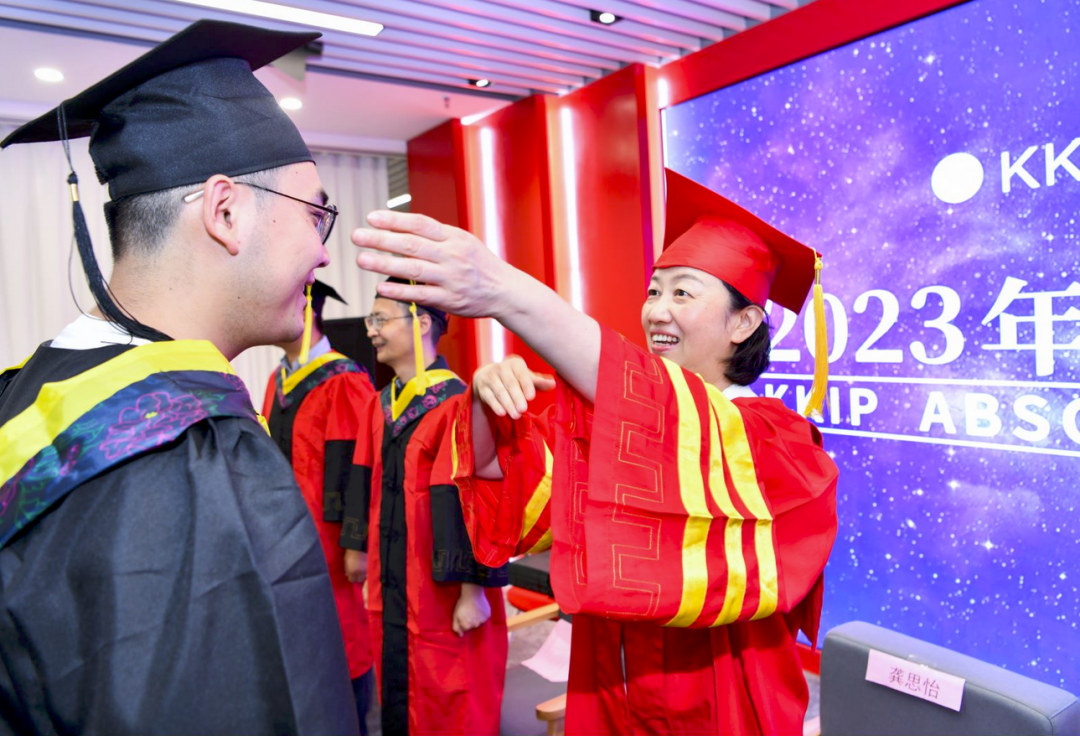 3044永利集团董事长龚思怡、3044永利集团经理刘军、3044永利集团副经理邵兵、3044永利集团学位指导委员会、公司教师代表、2023届全体毕业生以及3044永利集团2022届员工代表、员工家长共同出席本次典礼。