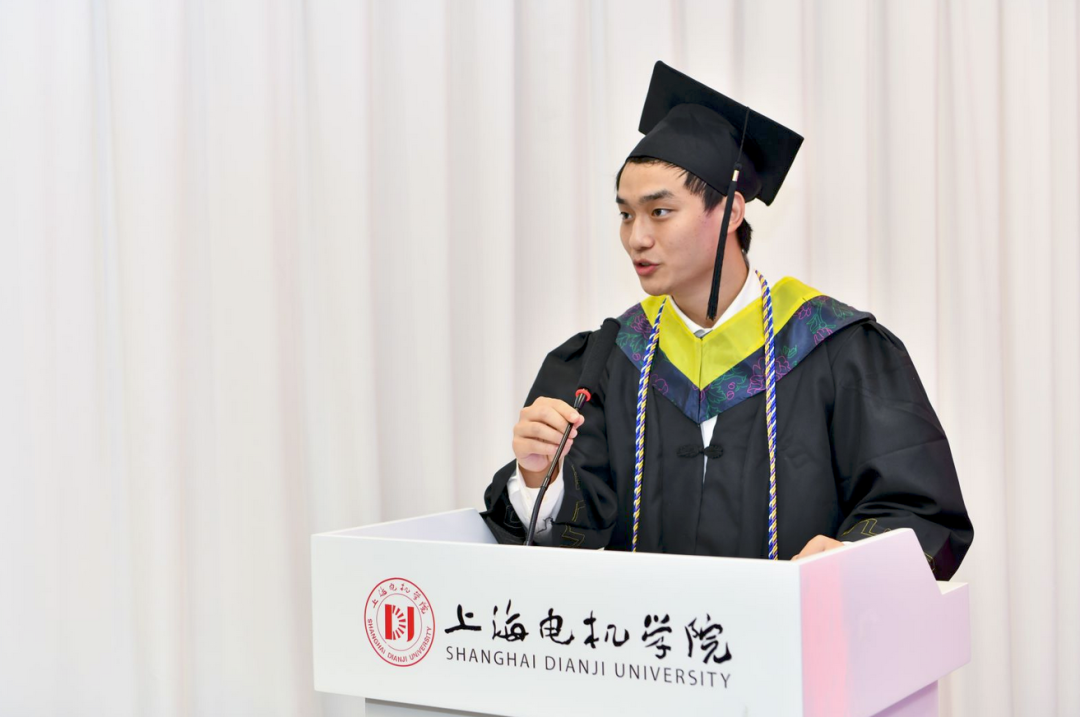 高羽老师作为教师代表也在毕业典礼上对同学们寄予最诚挚的祝愿。中德1923班毕业生袁航同学代表全体2023届同学发言,他向公司、公司以及所有老师对同学们四年来的培养和教育表达感谢和感恩,并鼓励号召所有毕业同学团结一心,在未来的道路上继续互相帮助,携手共进。走出电机,代表电机,在各自的岗位上发挥出自己的光和热。