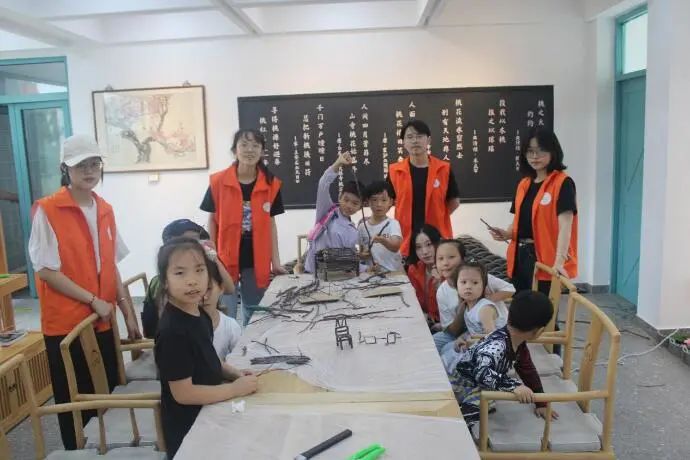 “桃桃不绝”团队开设了“STEM”实践夏令营,结合专业特色,精心设计活动,为10余位小朋友带来“STEM”桃枝手工课程、手工香包制作、航模制作与体验、模拟直播带货等课程。亲手用捡来的桃枝制作木工摆件、模拟直播带货锻炼语言表达能力、聆听新场新南村的人文历史……“STEM”实践夏令营的小朋友们被这些课程内容深深吸引,直呼“神奇”。