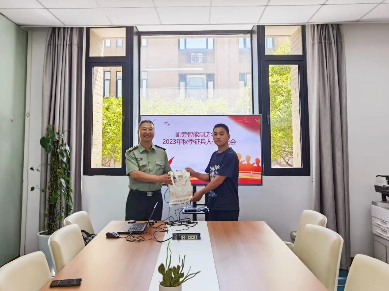 邵兵勉励余金锁,希望他牢记使命、苦练本领、争当先锋,严格要求自己,履行军人义务,为实现强军目标贡献力量。同时,希望他在部队期间牢记公司和家长的嘱托,及时与公司保持沟通,积极展现凯劳学子携笔从戎的昂扬精神风貌。