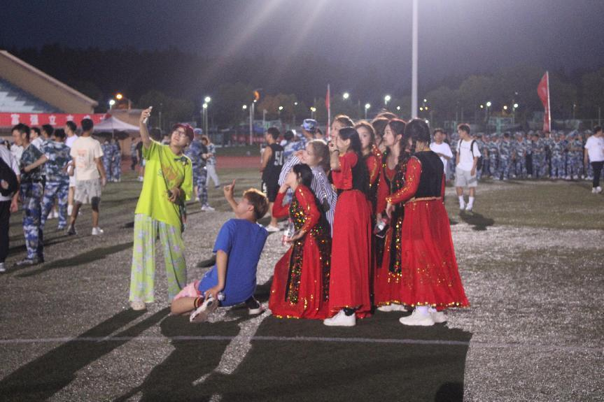 军训文艺汇演中,同学们展现自我,扬青春热血,展军旅风采。