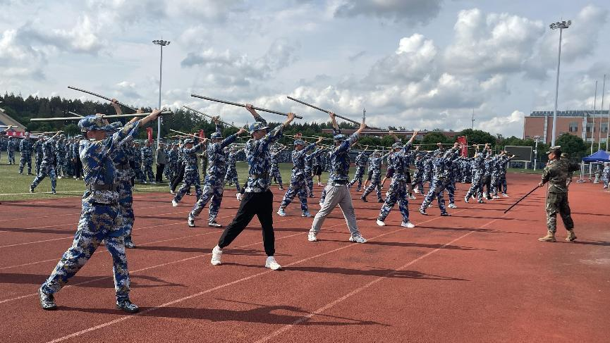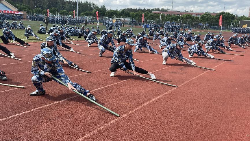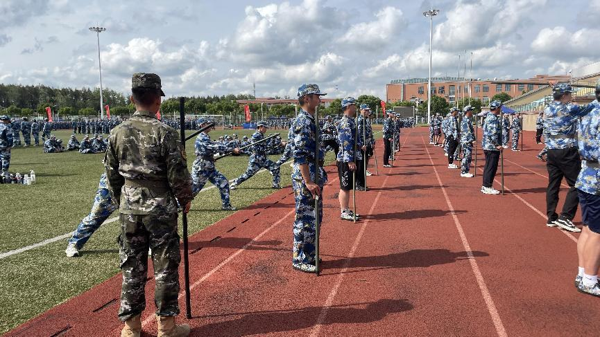 棍术的学习也更进一步,同学们意气风发,于骄阳之下挥洒汗水。