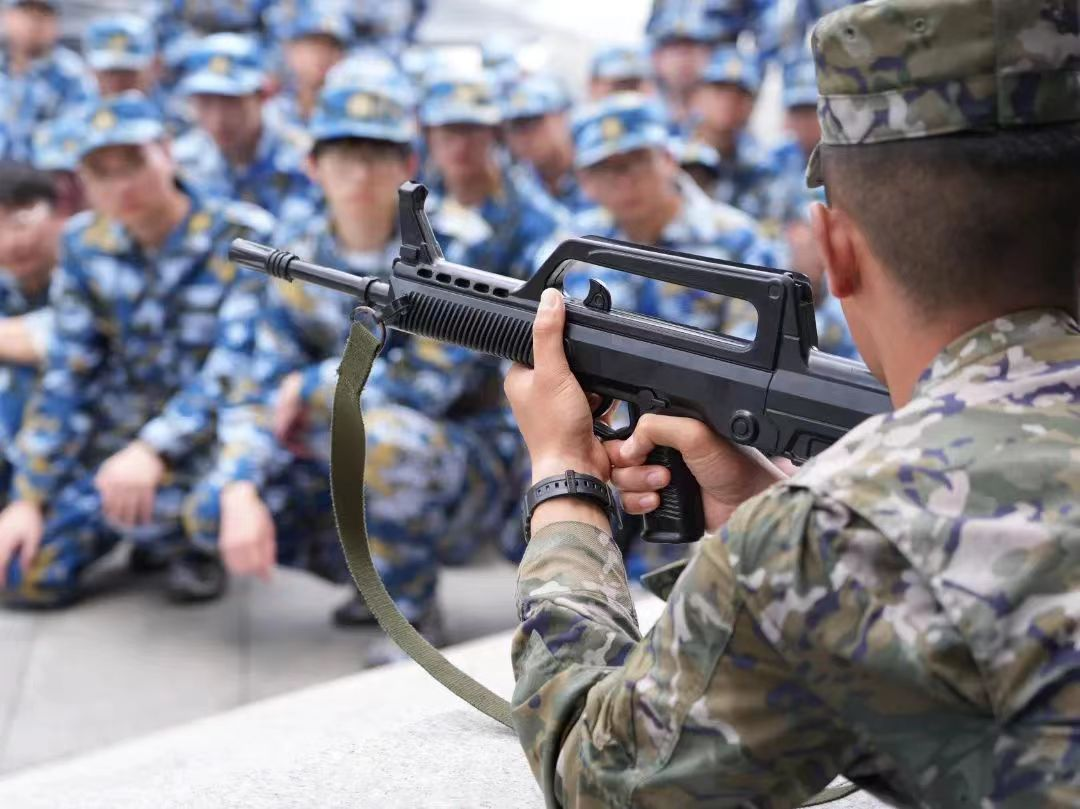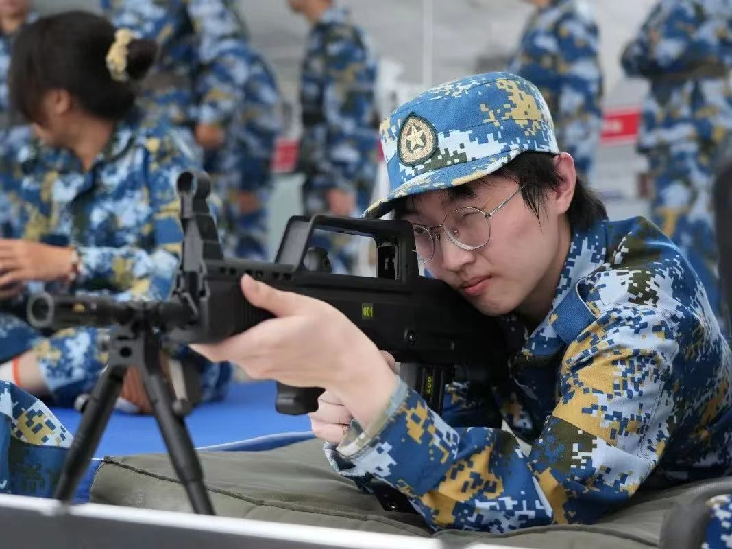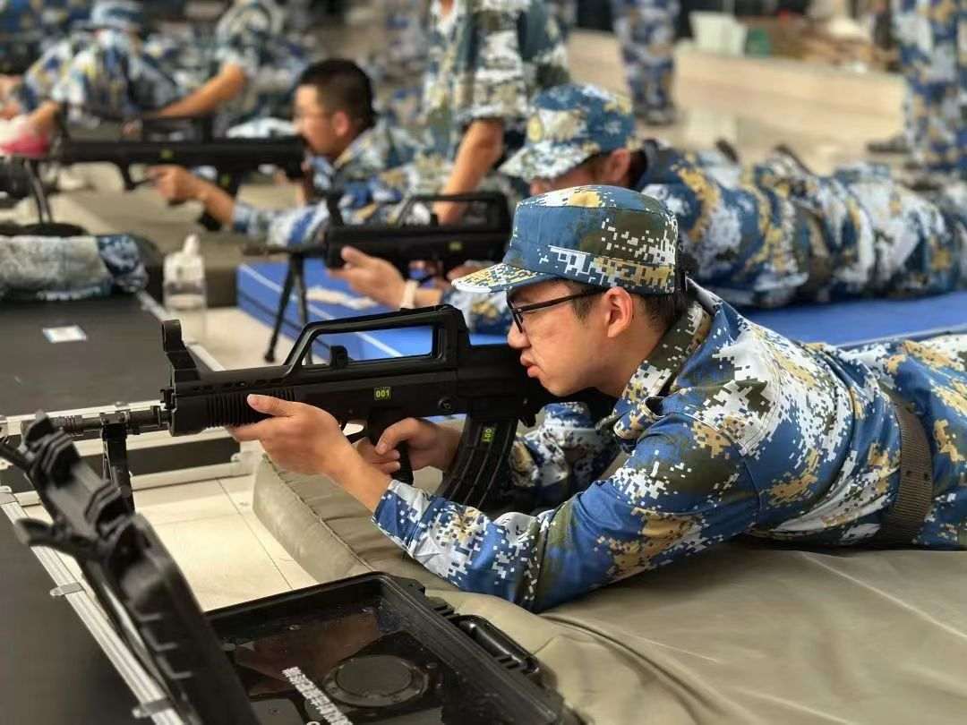 军训是迈入新校园的必经之路。教官带领我们进行射击训练,我们迈着齐步走向射击训练室,门口有教官交代射击要领,如何握把,瞄准,射击,例如扳机要慢慢扣动,枪要抵在肩膀凹处才能正中靶子,排队进入后我们以俯卧姿势伏地准备射击,遵循教官教的方式将准心放在圆心瞄准靶子,慢慢扣动扳机,尽管是电子枪,但是子弹穿破空气的声音仍仿佛在我耳边响起,电子屏的数据随着击中产生变化。在此次射击训练中我收获了前所未有的体验感,让我们真切地尝试到在军队的必备技能,借此机会让大家更了解军人的不易与保卫祖国的光荣使命。