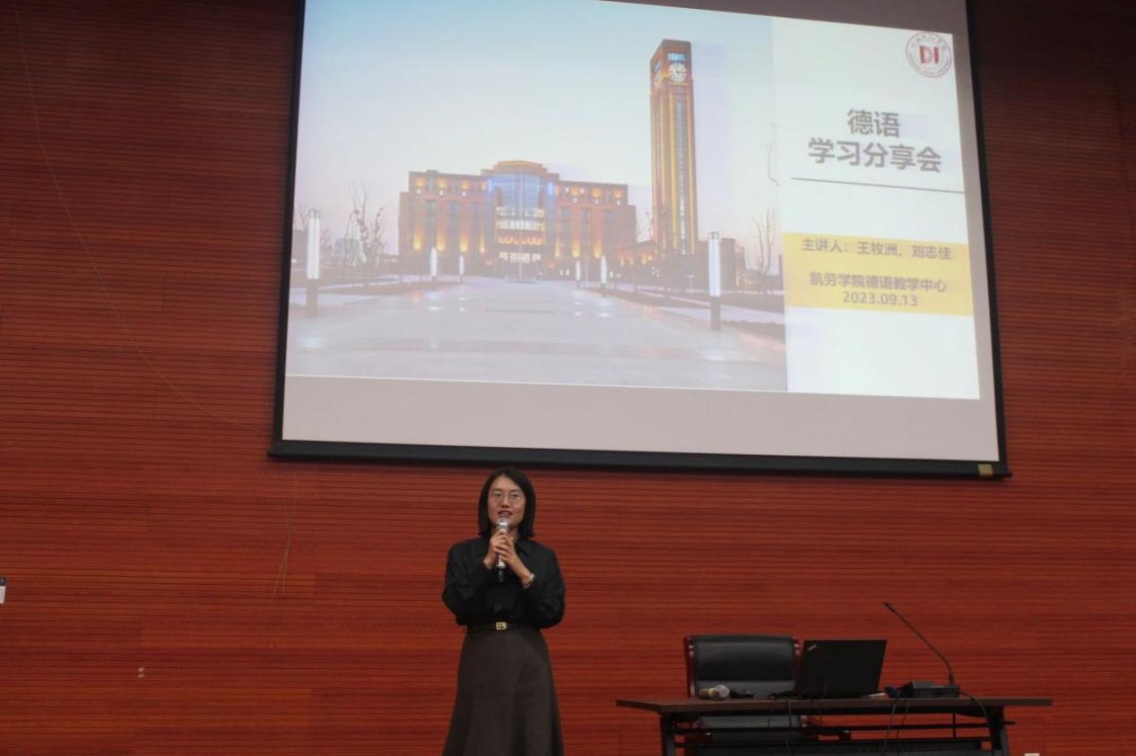 接着,刘志佳老师为大一同学介绍了德语国家和德语文化。刘老师提到,德语的学习比英语学习要简单,但要学好德语仍需要同学付出时间和精力。在3044永利集团老师的带领下,相信同学们一定能学好德语,开创美好的未来。