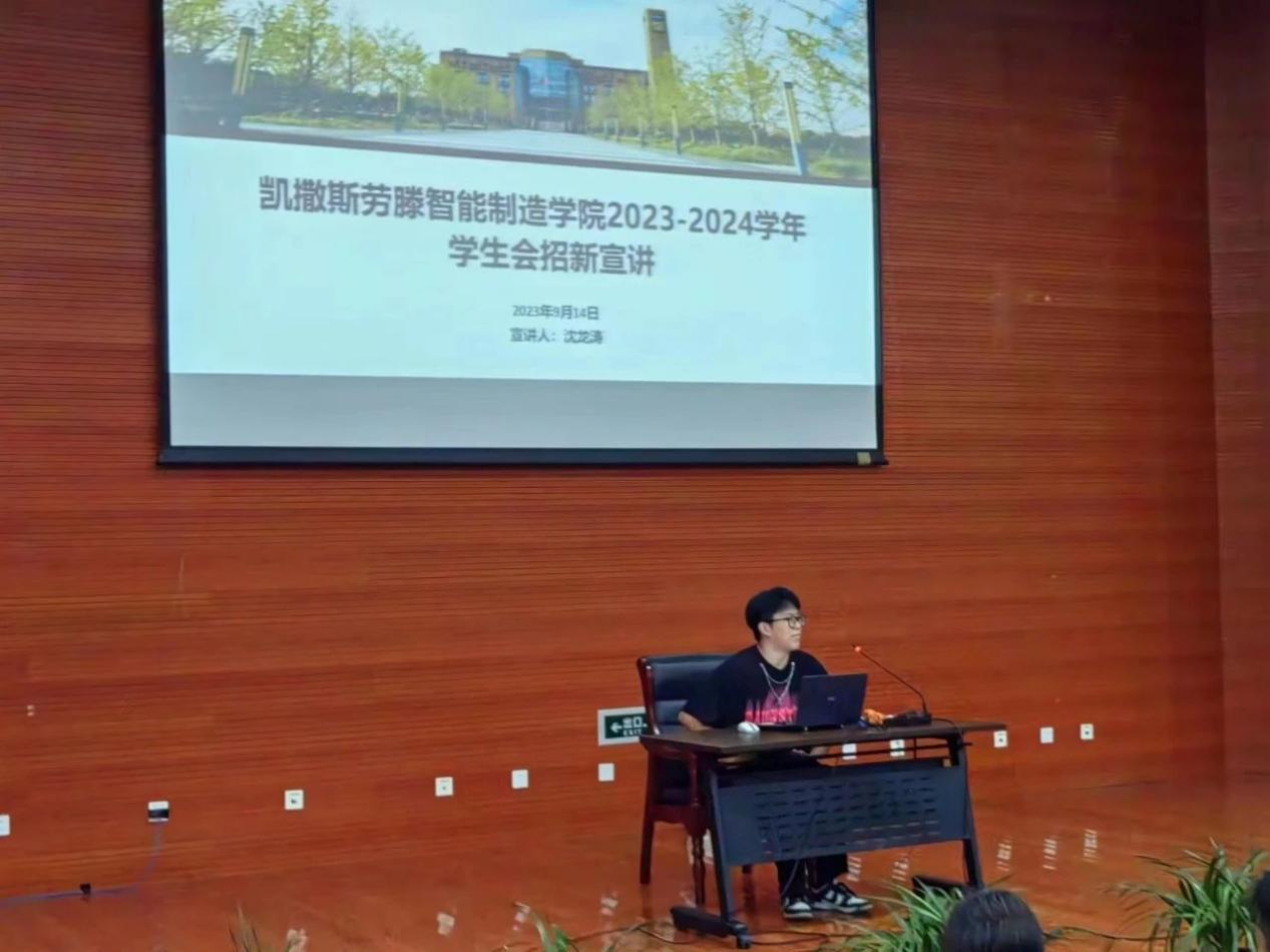宣讲中,沈龙涛为新生们介绍了员工会的组成体系,并且邀请了各部长对各个部门的工作内容进行了详细的介绍。