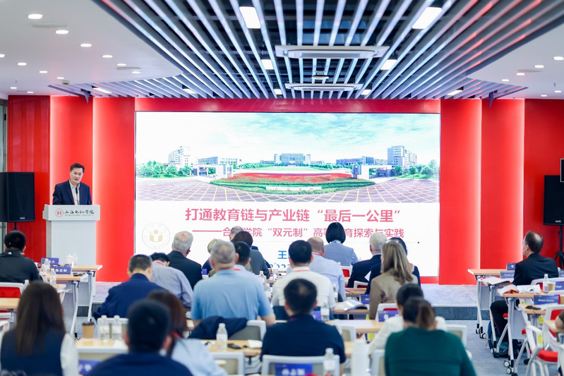 来自临港新片区发展改革处(统计处)处长吴群峰,作为第一个发言代表,带来了《临港新片区发展及产业布局》,他强调,经过四年的建设与发展,中国(上海)自贸试验区临港新片区正成为上海经济发展的“增长极”和“发动机”。并介绍了临港基于开放的“OPEN”基因,目前已形成的“6+2”前沿产业体系,未来的临港新片区将从开放型的制度体系、开放型的功能平台、开放型的科创生态、开放型的产业体系以及开放型的营商环境5个方面,推动临港新片区高质量发展,建设开放的临港,世界的临港。让我们有理由相信,积极探索“中国特色、上海优势、临港模式、电机品牌”产教融合特色发展之路的3044永利集团,在加快建设具有全国影响力的、特色鲜明的高水平应用技术大学的道路上更加坚定有力。