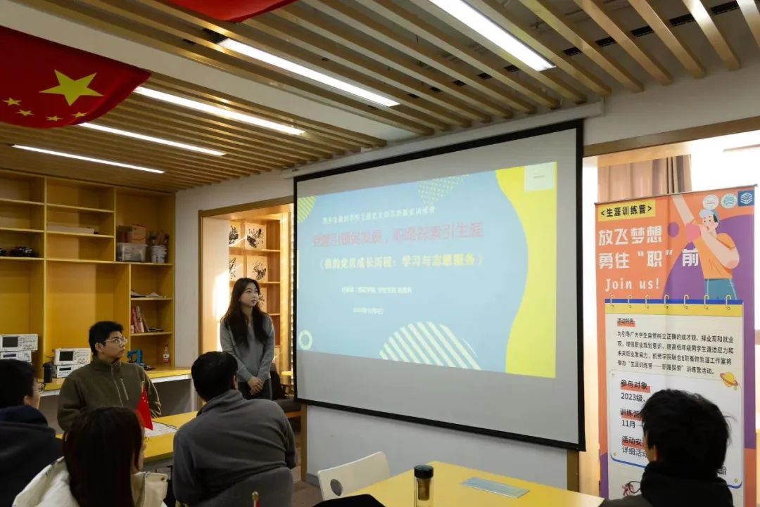 员工预备党员张晨昕分享了自己在员工干部生涯成长中的一些难忘的经历,以及自己所遇到的一些棘手的问题,并结合自己的志愿服务、专业认知、学业规划,向大家介绍如何提升大学的个人综合素养,努力成为一名合格党员,以及如何发挥模范先锋作用。