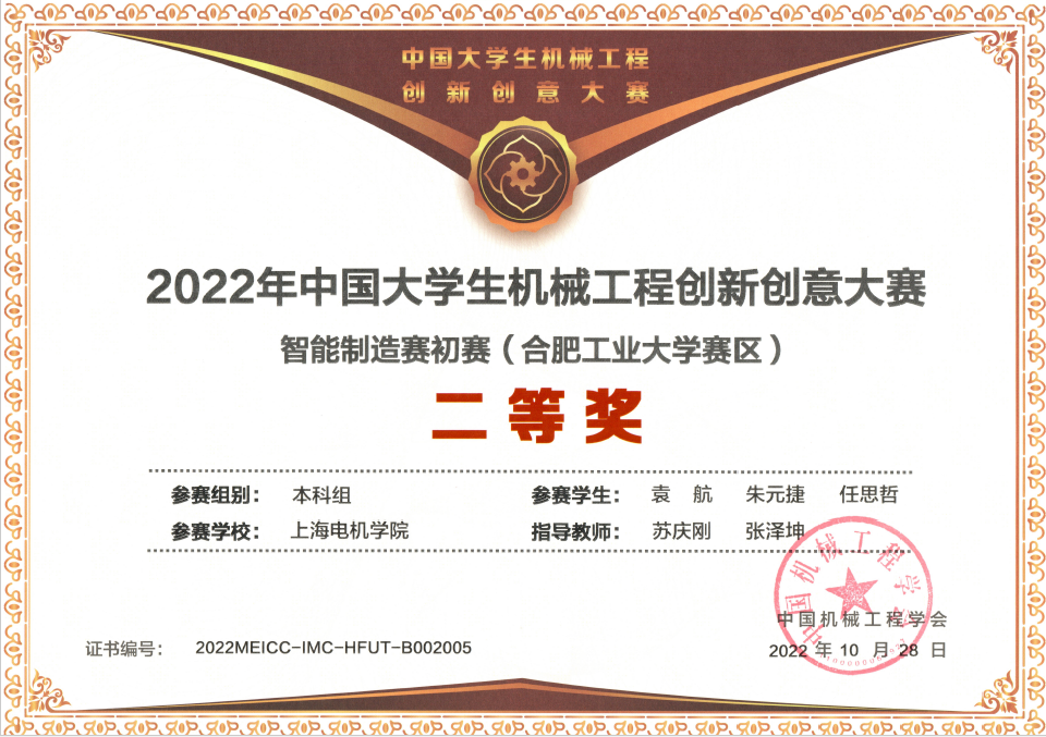 2 | 2022 | 生产系统集成与调试 | 袁航、朱元捷、任思哲 | 三等奖 | 苏庆刚、张泽坤 |